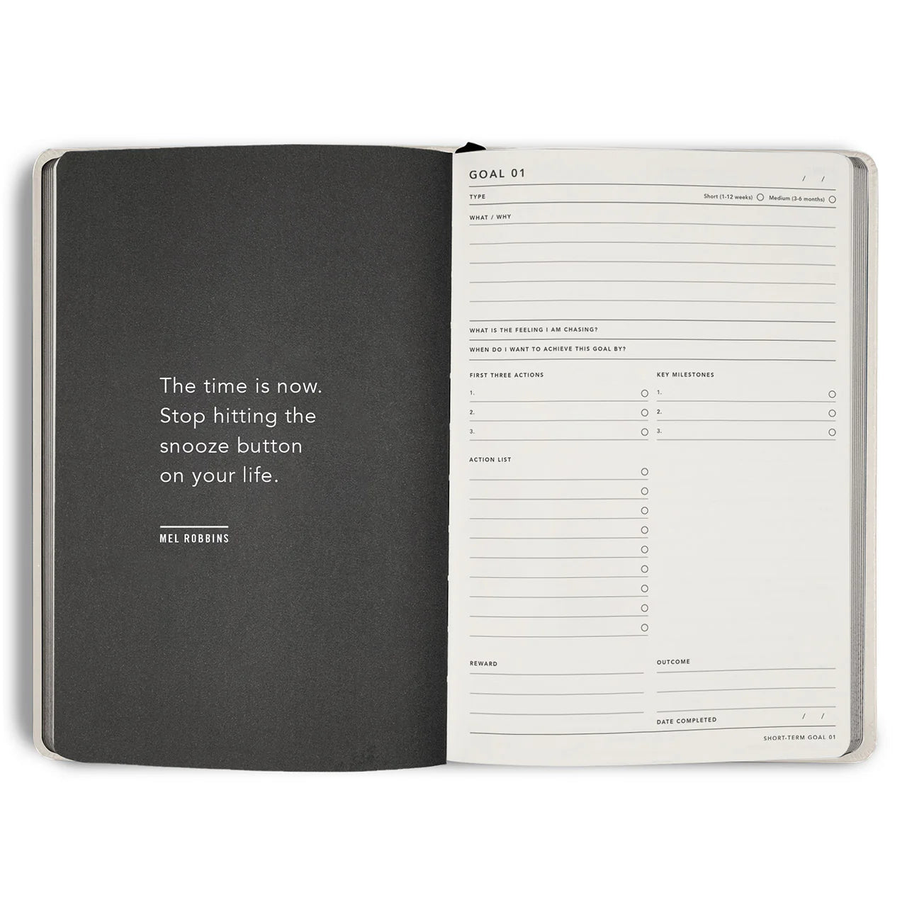 Features 2 divider ribbons, debossed cover design, fountain pen-friendly paper, short- and long-term goal-planning, mind-mapping space, monthly reviews, progress tracker, budgeting section