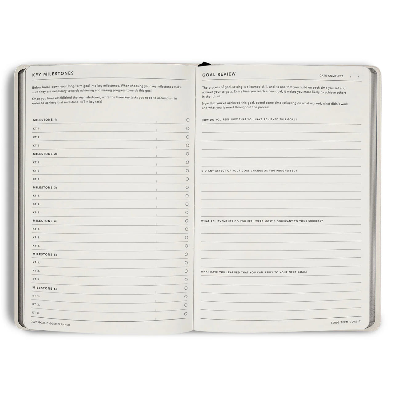 Get into a goal-oriented mindset and stay focused with a paper version of a life coach courtesy of the MiGoals 2026 Classic Goal Digger Weekly Action Diary.