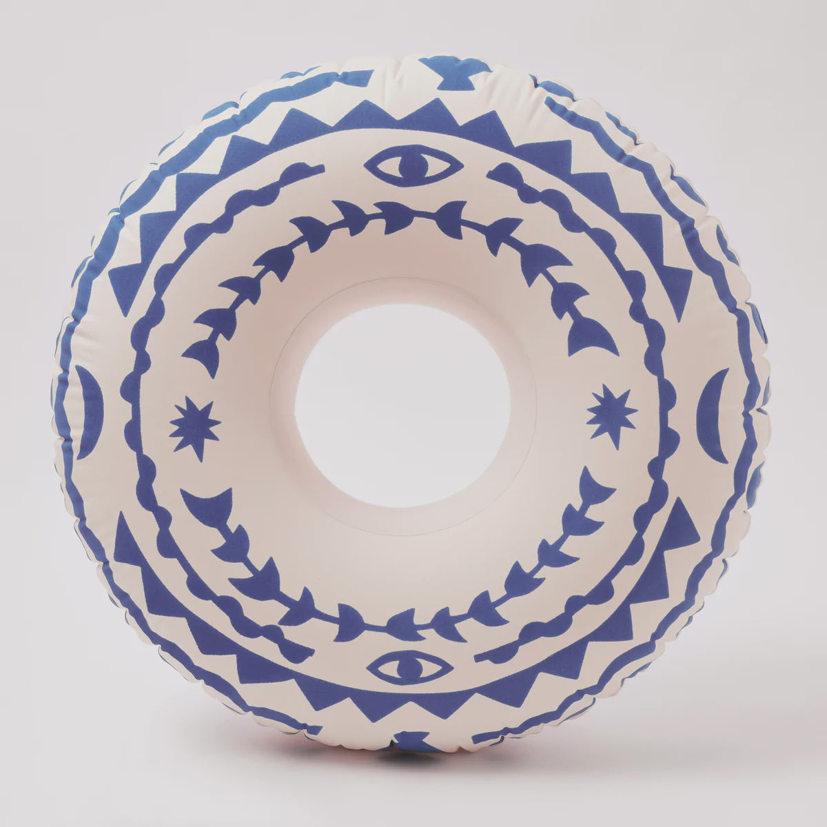Float away to paradise this summer with the My Mediterranean Vintage Pool Ring. As part of our Vintage Collection, the Vintage Pool Ring is a refreshed classic made to take you back in time! With an ultra-retro paper cutout print and mediterranean blue and white colour scheme, you'll be instantly transported to warm sun kissed days of the past. Made from luxurious cotton backed PVC, all of the vintage floats are soft to the touch and designed to have a retro feel. The My Mediterranean Vintage Pool Ring also features exclusive artwork from the limited edition SUNNYLiFE X Daimon Downey collaboration, inspired by nostalgic summer days in the European sun.