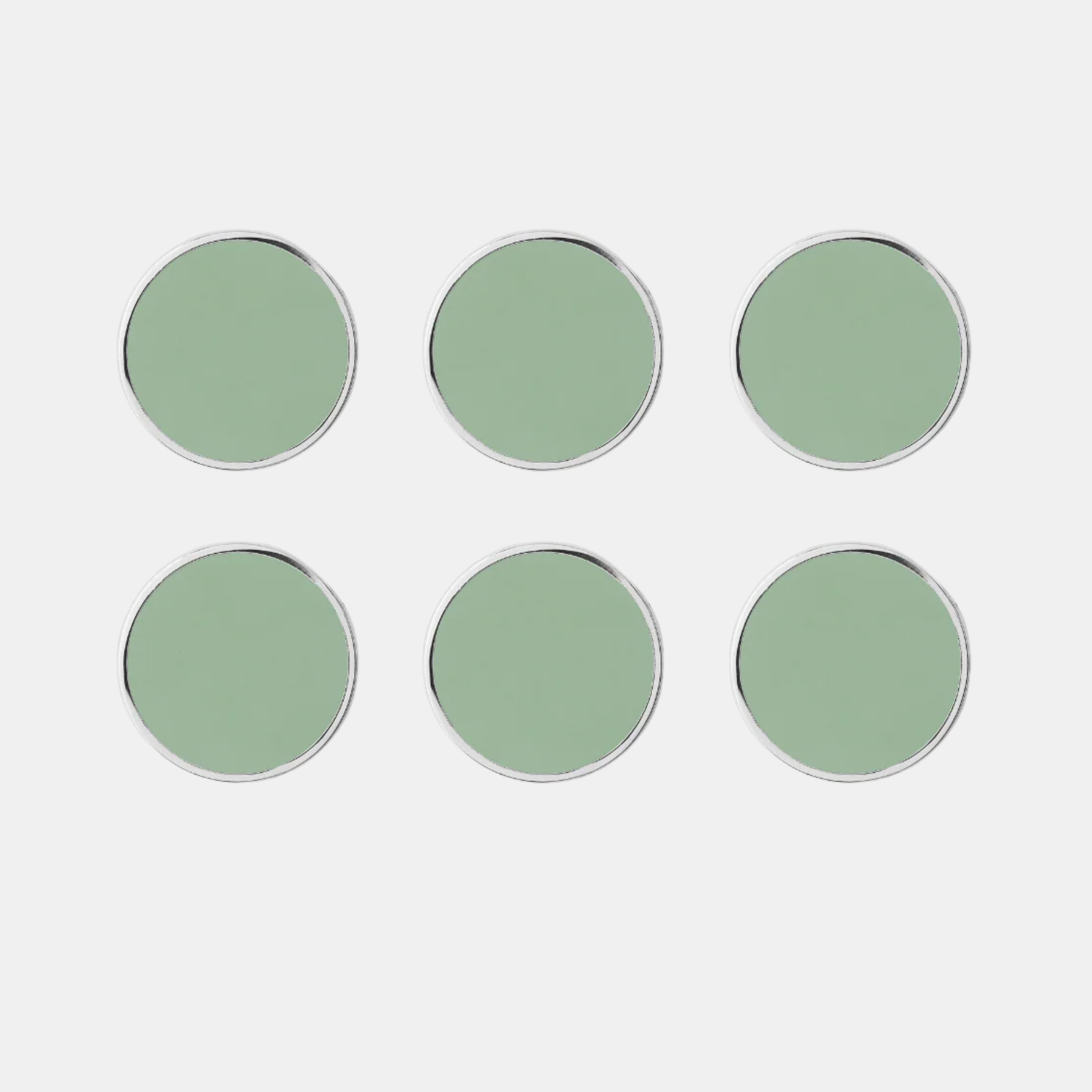 The Buttons have a lovely smooth flat surface bordered by a shiny silver edge. Their magnetic backs are made from neodymium, making them super strong! Packs of six are available in each of our 12 signature colours, so you can have fun mixing and matching.