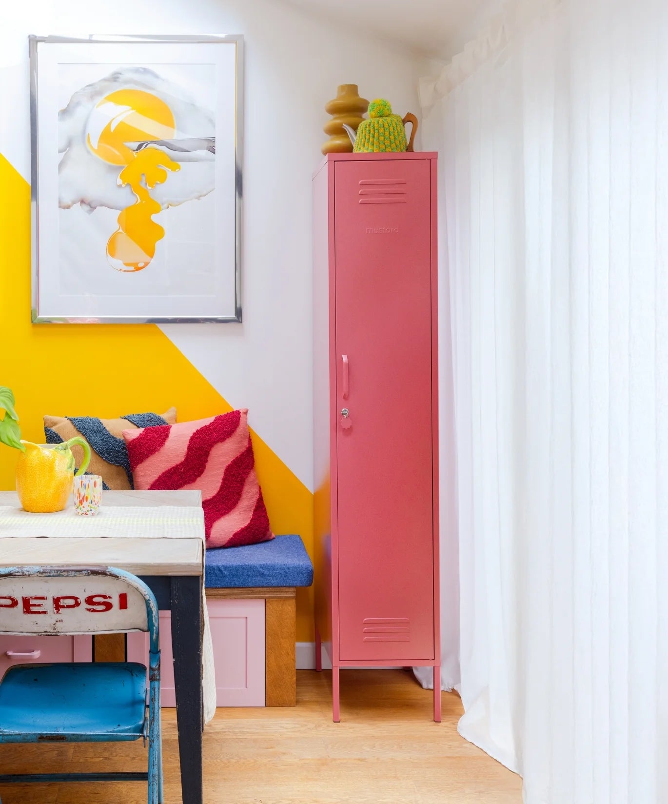 Inside, you'll find a removable hanging rail, four adjustable shelves and two handy hooks. On the outside, you'll find a handle, lock, custom keyring, air vents and a subtle embossed 'mustard', to let you know it's the real deal. Plus, the whole locker is smooth, matte and magnetic! Screens don't always do our colours justice — order a swatch to see how it looks in your space.