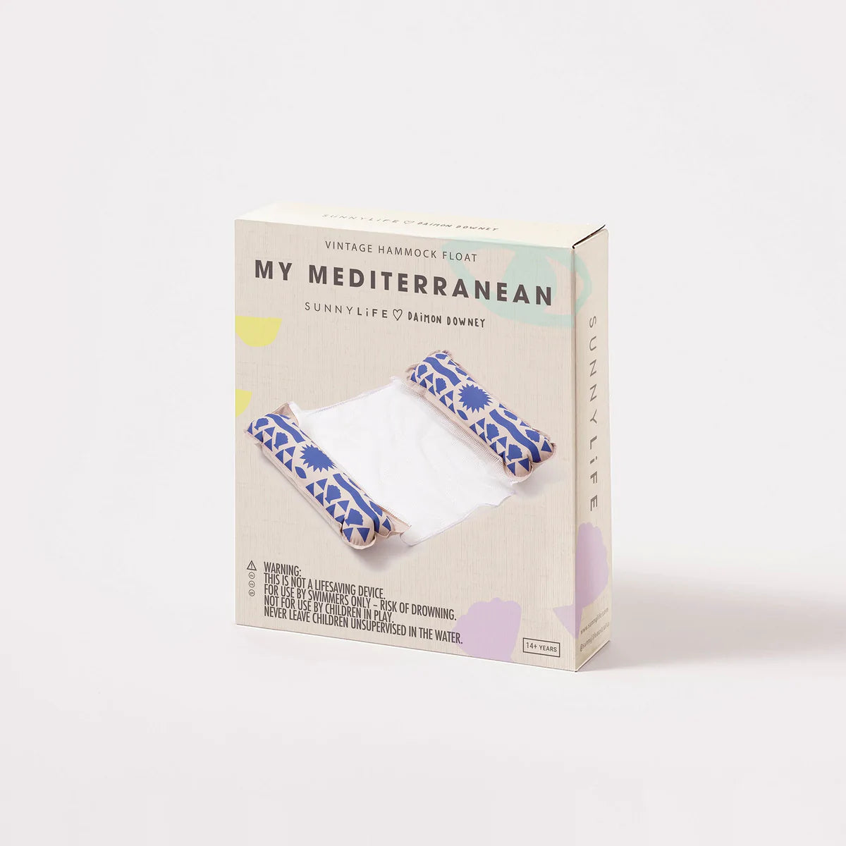 Relax into summer like a pro with the My Mediterranean Vintage Hammock Float. Designed to be used as both a seat and lounger, the Hammock Float is super chic and serves multiple purposes. With an inflated pillow on either side, the ultra-comfortable Hammock Float features a net centre to make sure you are cool, comfy and supported all summer long! As part of our Vintage Collection, the My Mediterranean Hammock is made to take you back in time! Made from luxurious cotton backed PVC, all of the vintage floats are soft to the touch and have a retro feel. Inspired by nostalgic summer days in the European sun, the My Mediterranean Vintage Hammock Float also features exclusive artwork from the limited edition SUNNYLiFE X Daimon Downey collaboration!